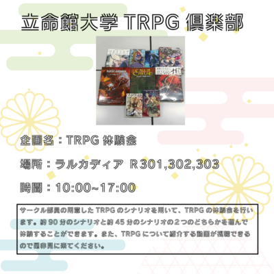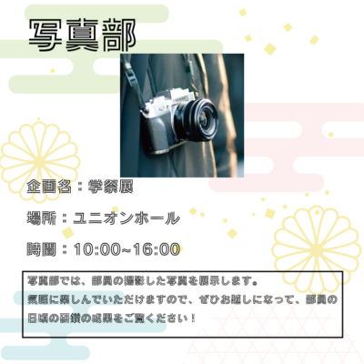学園祭ではサークルや研究会など様々な団体が様々な企画を実施します!
